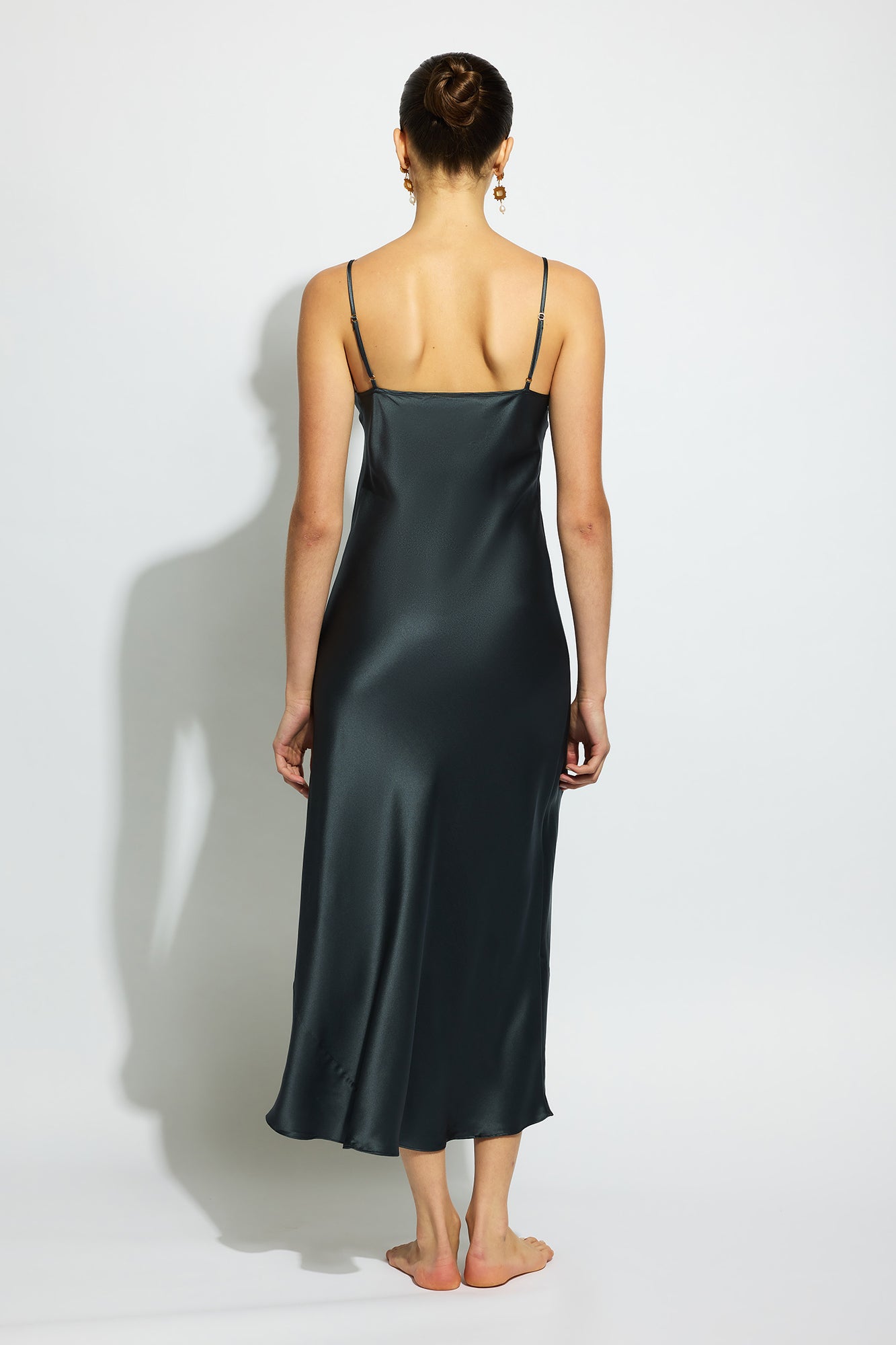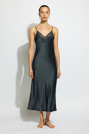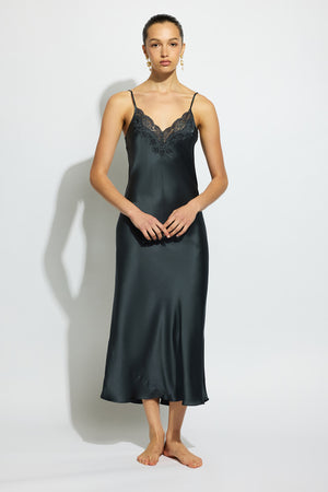 The Silk Lace Slip is an enduring romance, made in soft silk and detailed with delicate hand-cut lace to celebrate the female form. A classic V-neck slip style that falls to the mid-calf. Spaghetti straps from the same silk are adjustable for a perfect fit. Silk Basics by GINIA are modern silk essentials for every day. A collection of beautifully curated pieces that work independently and in combination. Designed to be worn and loved every day.