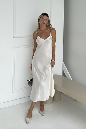 Silk Basics by GINIA are modern silk essentials for every day. A collection of beautifully curated pieces that work independently and in combination. Designed to be worn and loved every day. Reflecting the timeless style of the GINIA woman, the Silk Slip is a timeless midi dress that is ideal for layering under sheer outfits, sleepwear, or wearing alone. Bias-cut in 100% silk that falls to create a beautiful silhouette. Spaghetti straps from the same silk are adjustable for a perfect fit. A style that effortlessly transitions between sleep and street.
