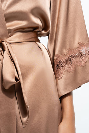 The Gigi Long Robe is crafted from 100% silk and drapes beautifully on the body with a bias-cut silhouette that moves with you. The neckline is detailed with a classic shawl collar, while silk ribbon ties fasten the robe internally and a silk belt cinches the waist. Designed in a flattering midi length, it falls gracefully to the mid-calf.