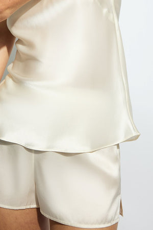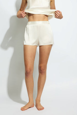 Silk Basics by GINIA are modern silk essentials for everyday. A collection of beautifully curated pieces that work independently and in combination. Designed to be worn and loved every day. The Silk Short is a classic sleep shape with a contemporary finish. The waistband is a wide 1.5" with elastic back and sides for comfort and ease of fit. Ruching through the elastics adds volume to the short, accentuating the movement of the silk.