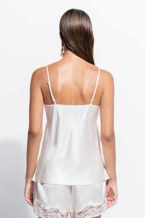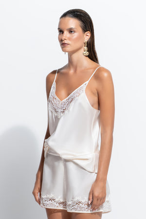 The Jezebel Cami embodies effortless elegance in our luxurious silk-cotton blend. Designed with a timeless V-neckline, a flattering hip-length cut and delicate floral lace adorns the neckline, adding a touch of femininity. The adjustable spaghetti straps ensure a customised fit, while the fluid drape of the silk provides a soft, versatile silhouette. Perfect for year-round wear, this cami seamlessly transitions from day to night